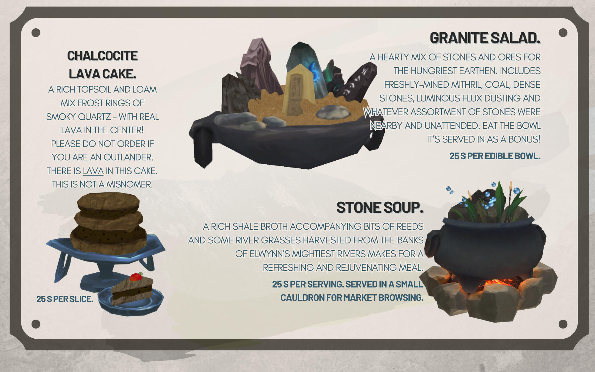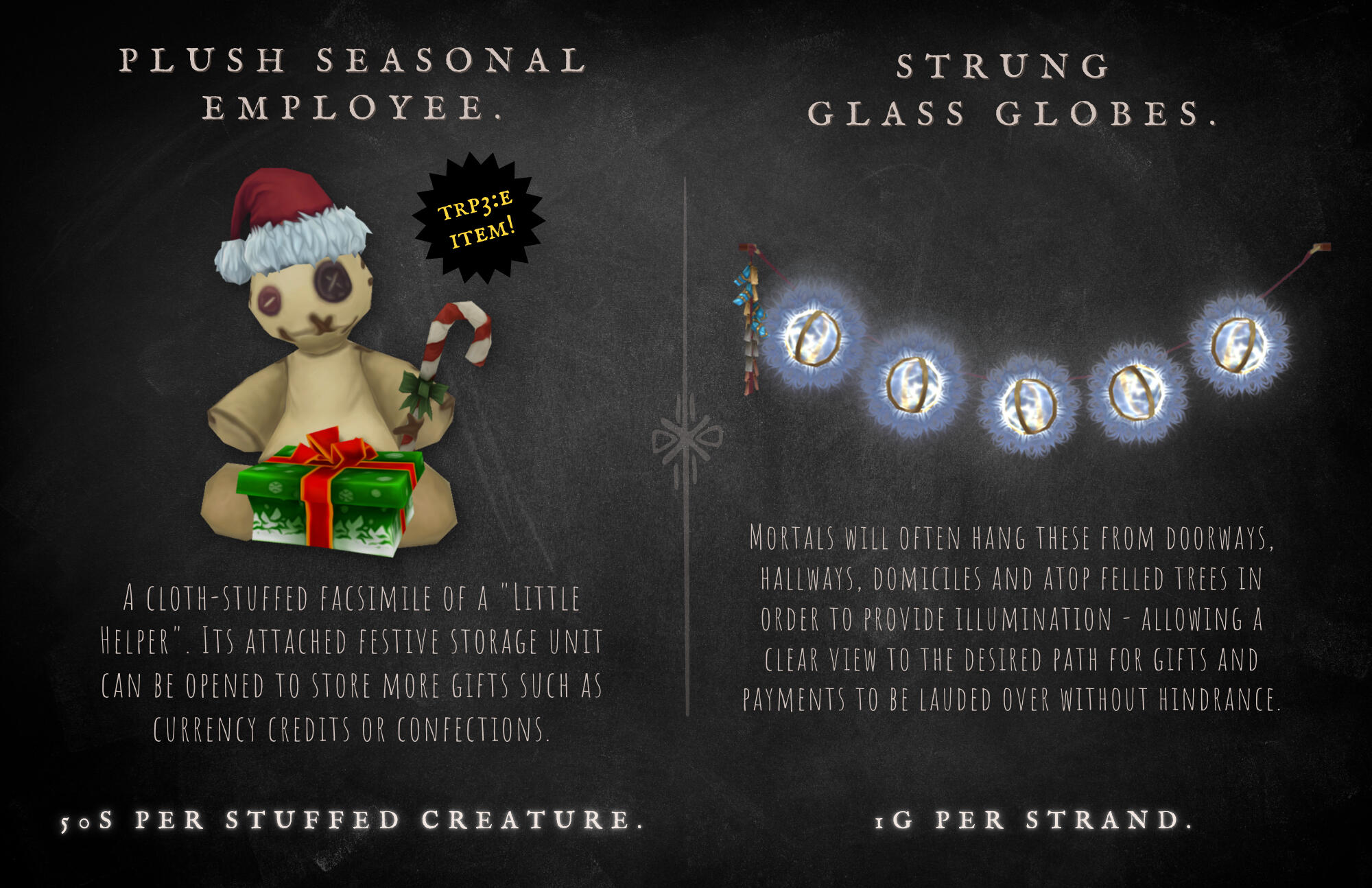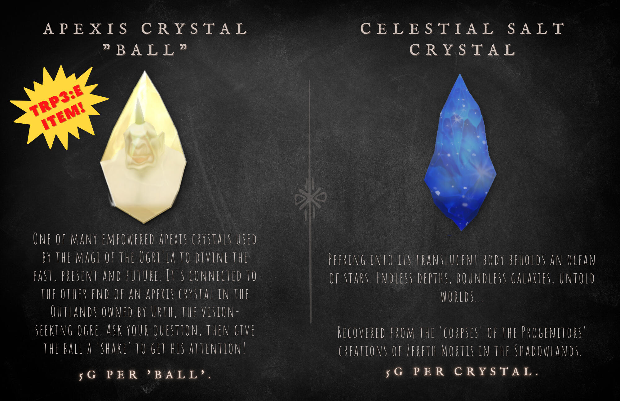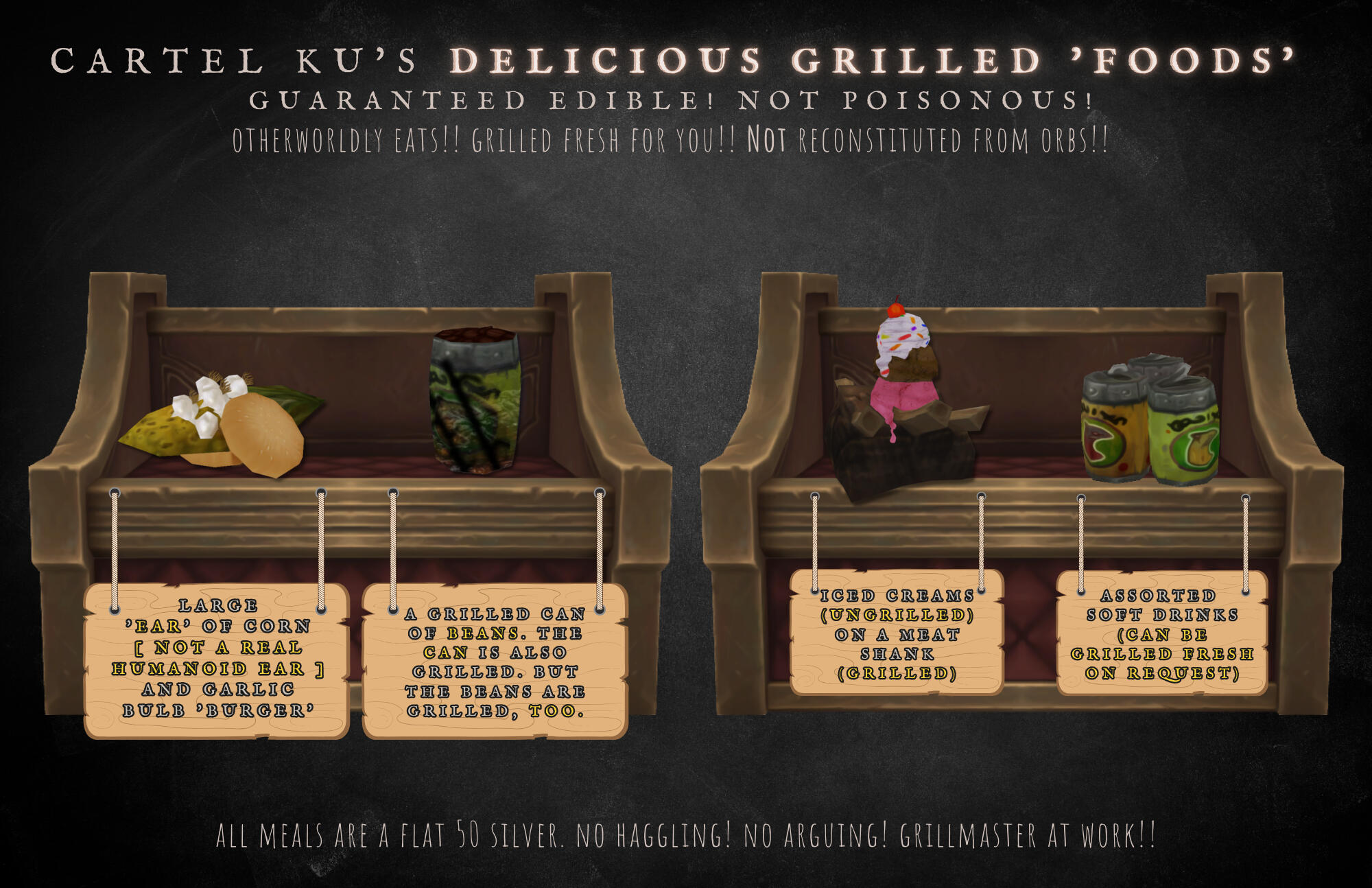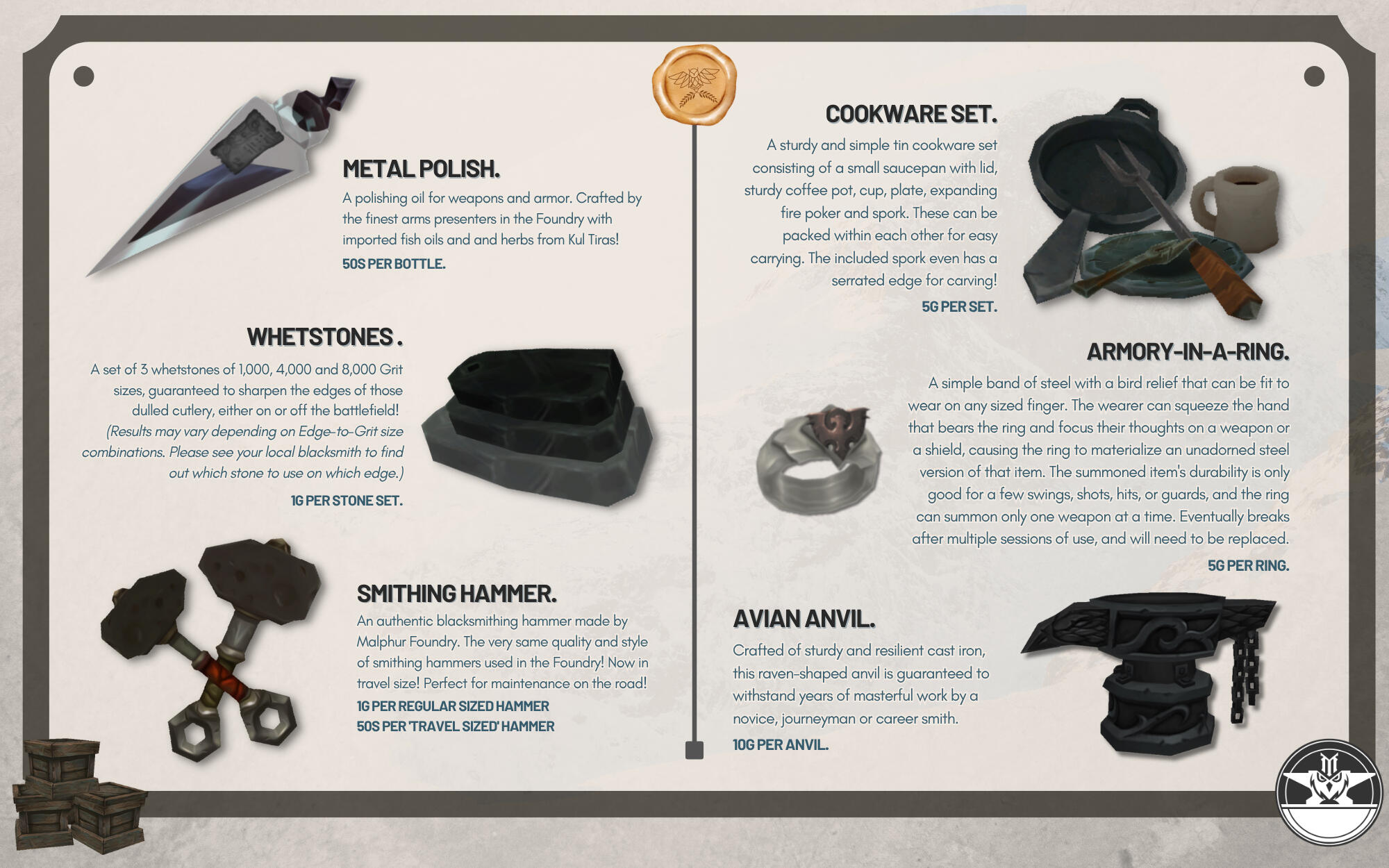 He is easily impressed by these mundane objects, and doesn't seem to understand or care for the market values of monetary currency - often trading for something of lesser value because it intrigues him, or because he's taken a liking to the customer.