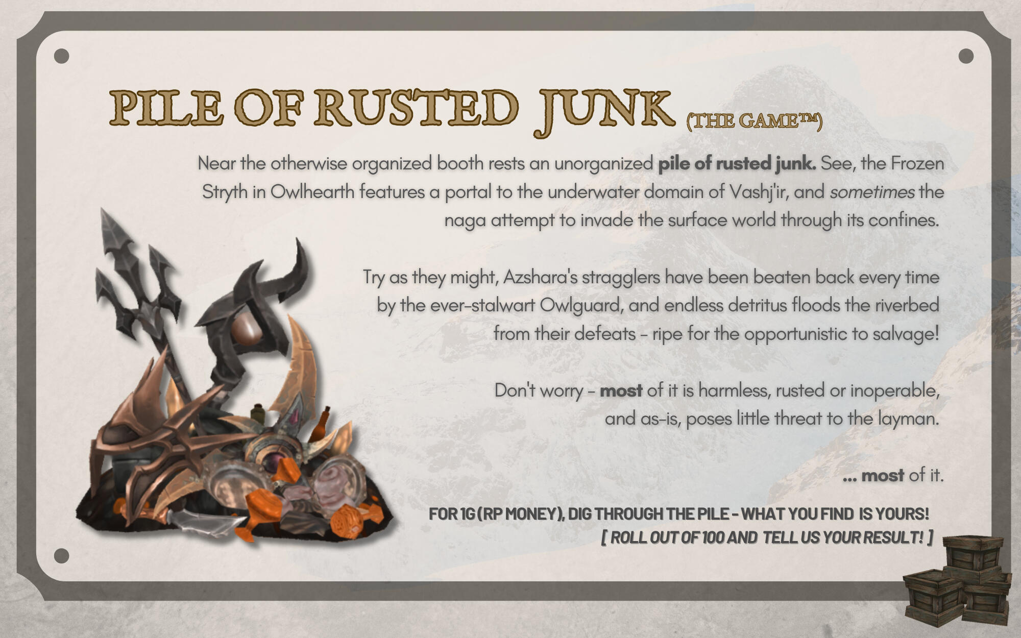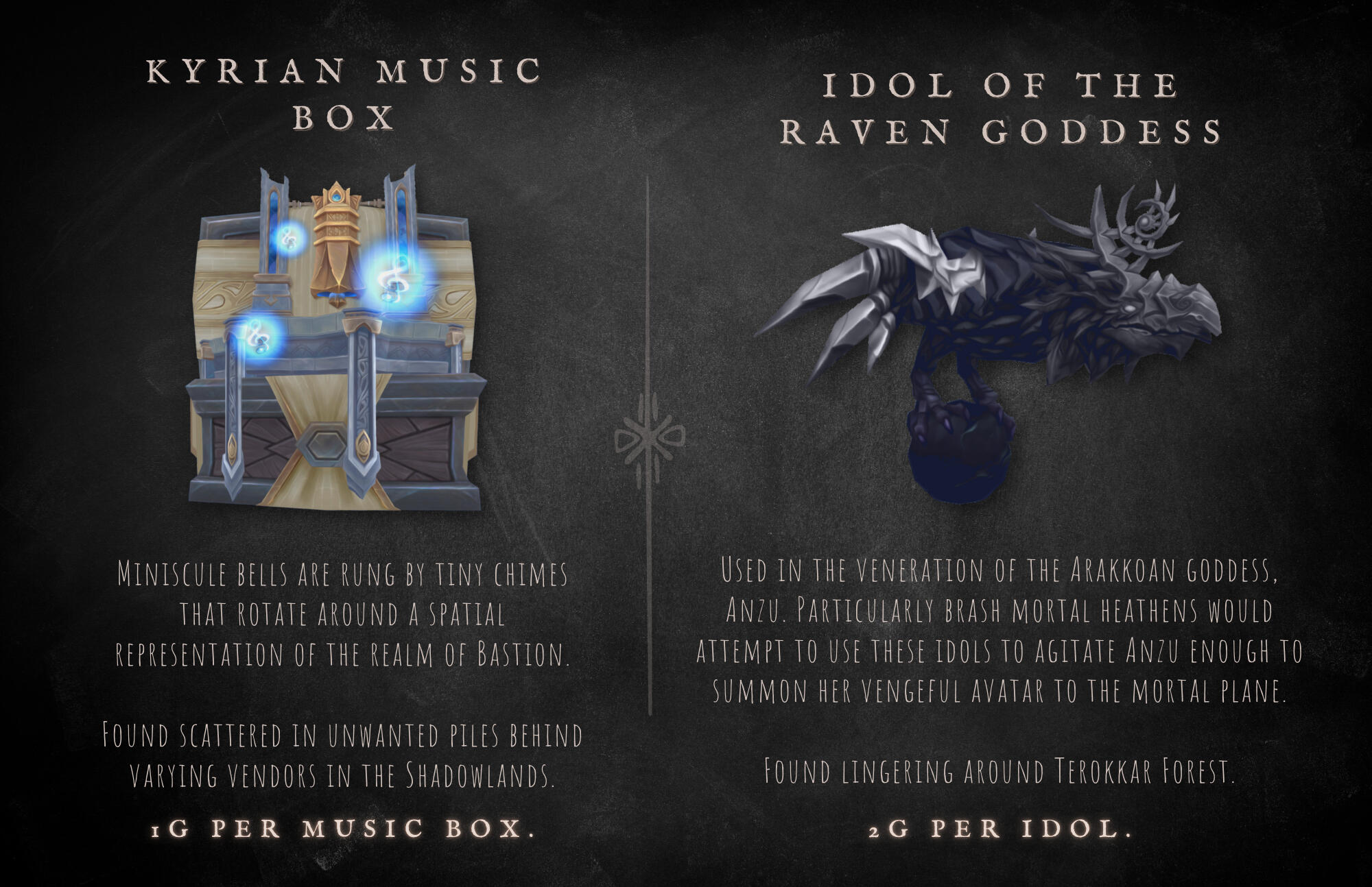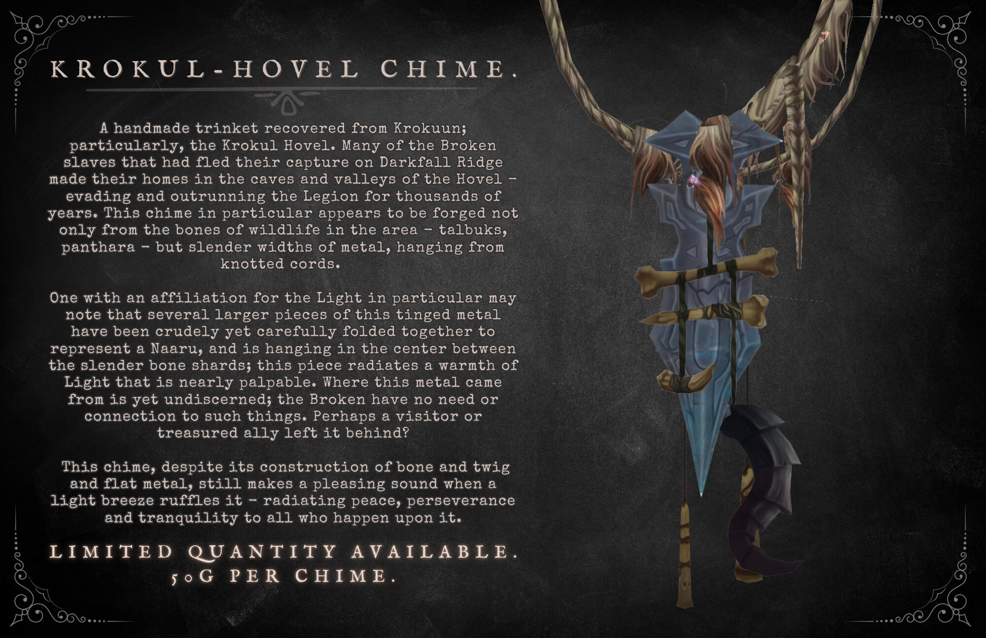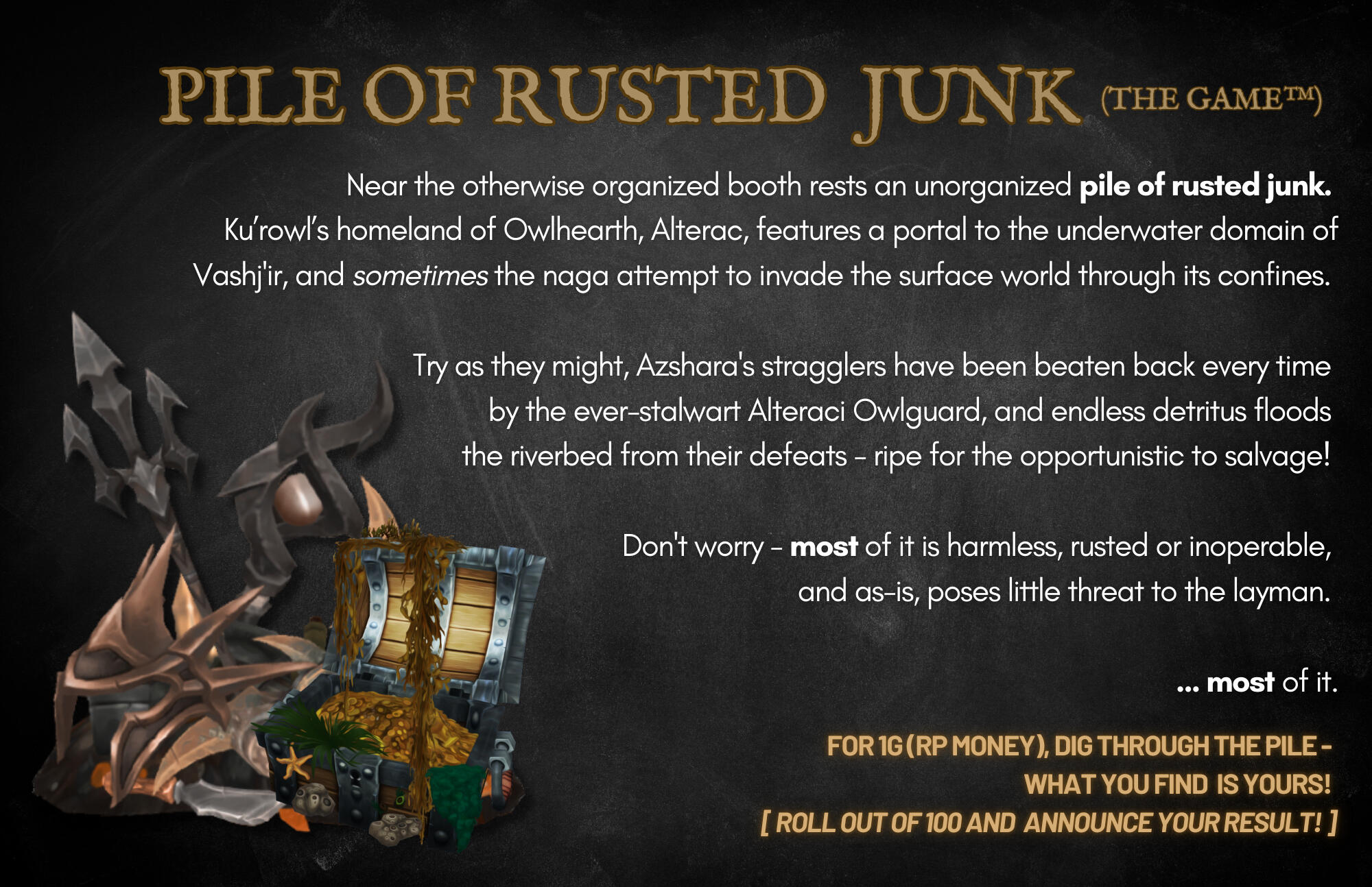 Ku'rowl maintained his presence on Azeroth via absconding to safety in varying locations from markets to landfills, scraping together a treasured grotto of 'fine wares'. He reasoned that returning to Maldraxxus was a net loss for his collection - 'hairy pustules' not commanding nearly as much of his interest as 'rubber ducks' or 'used Mechagnomish battery coils'.