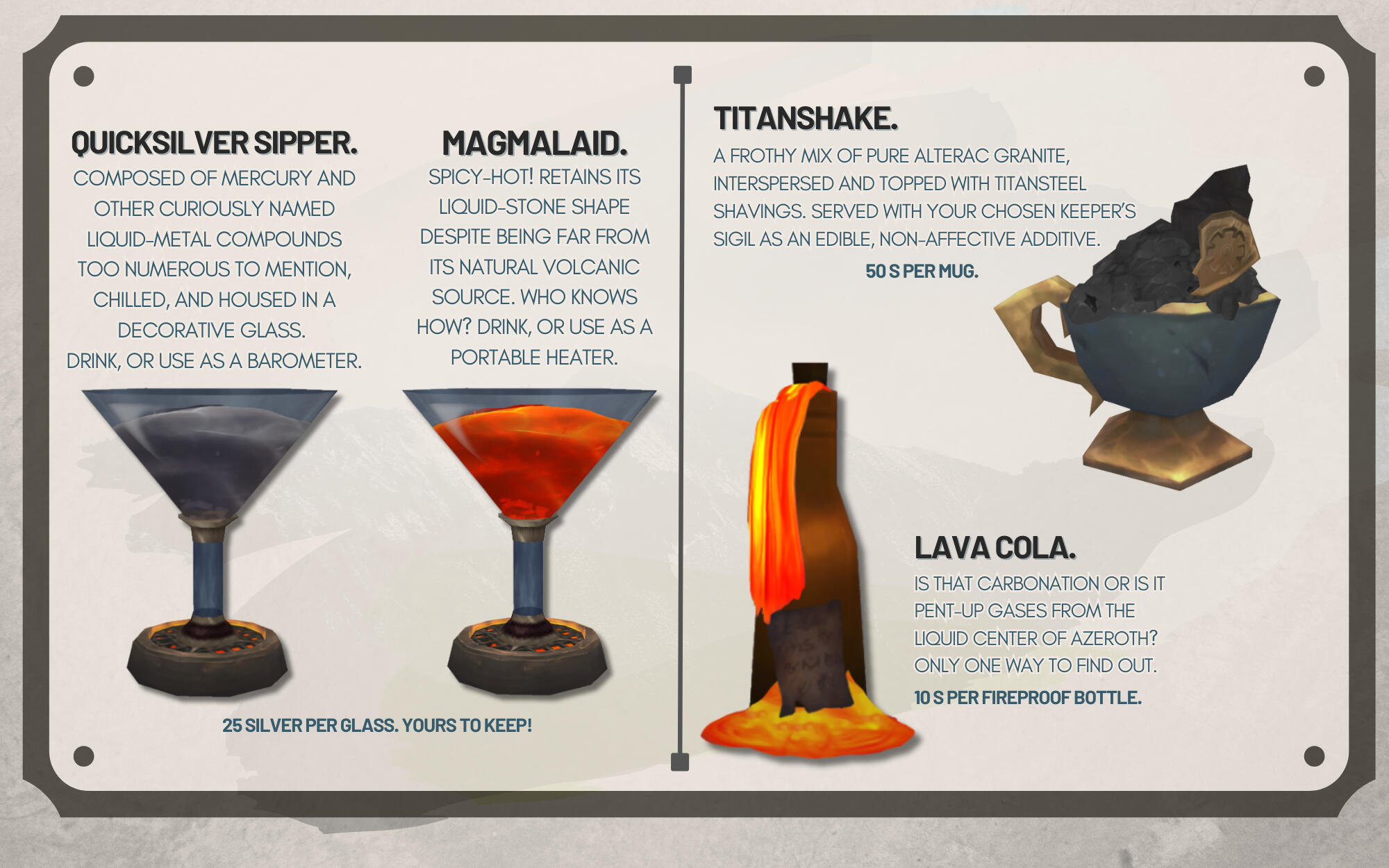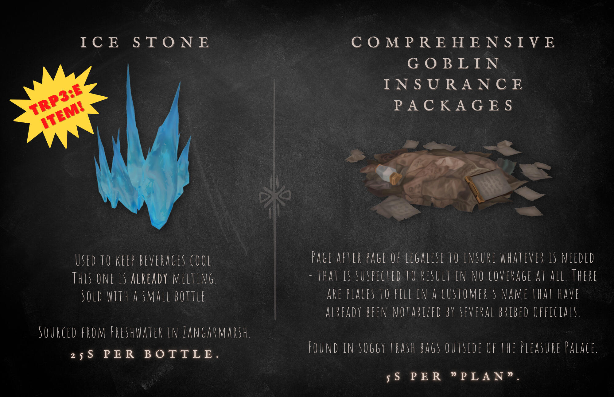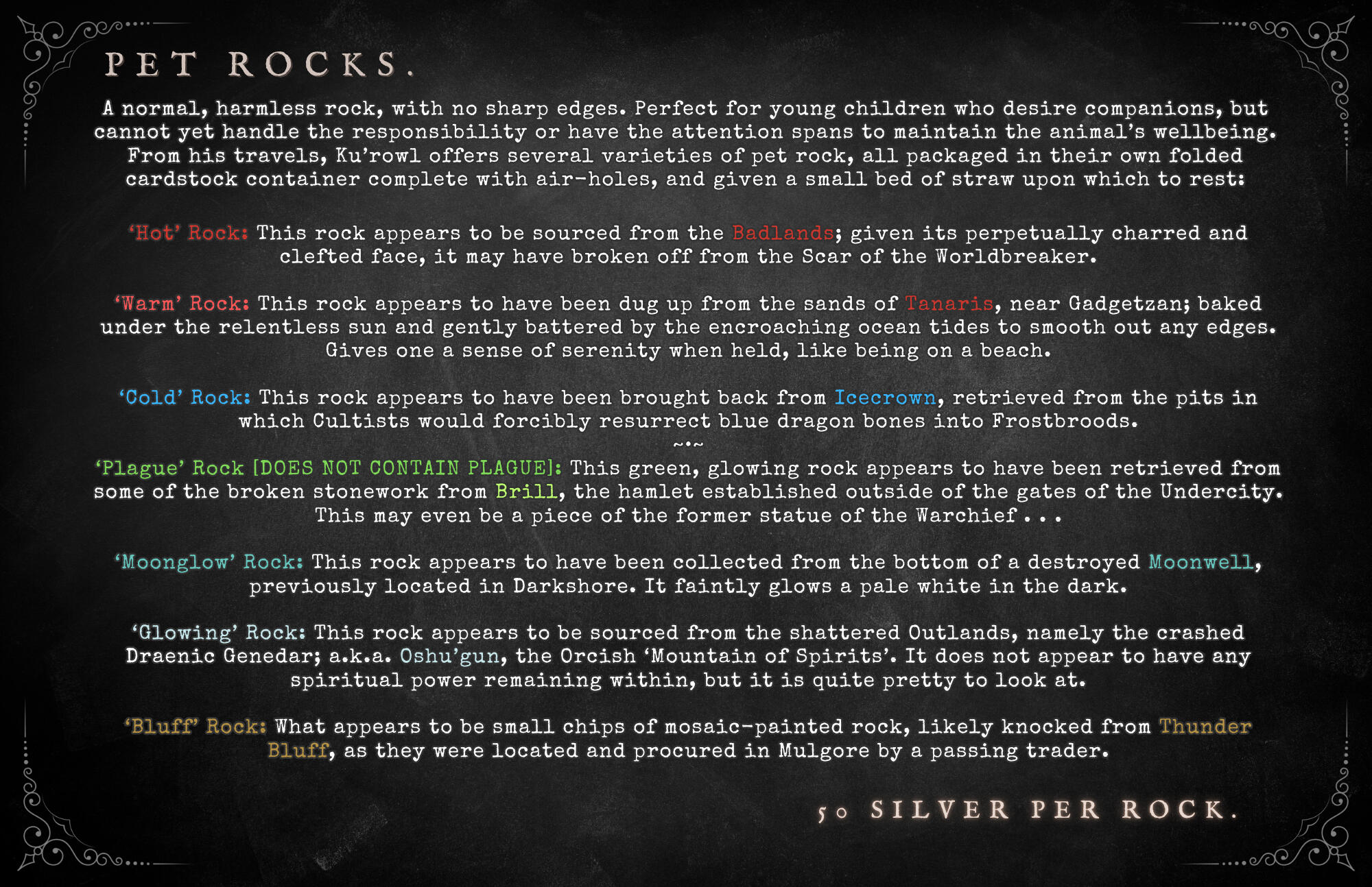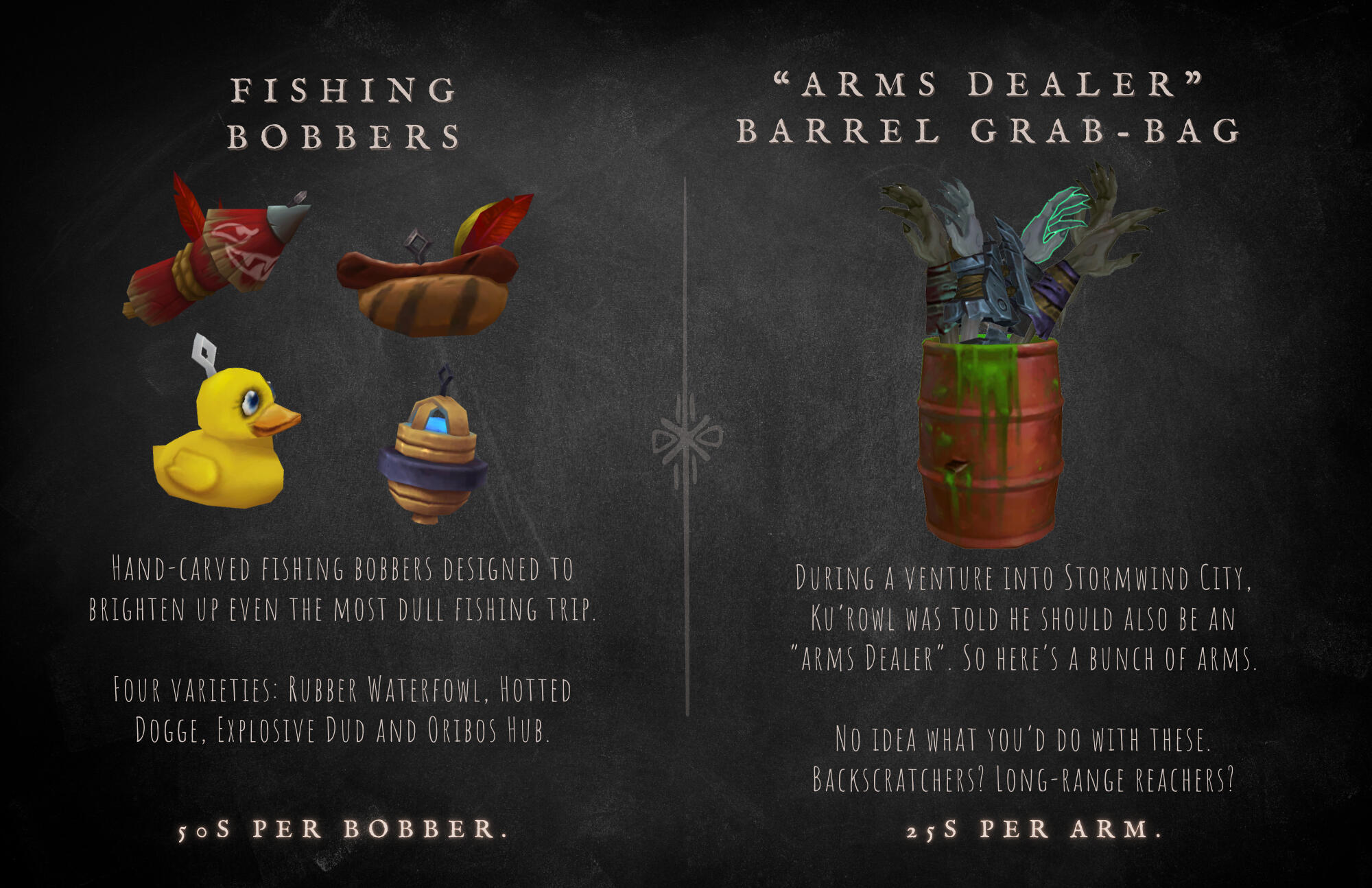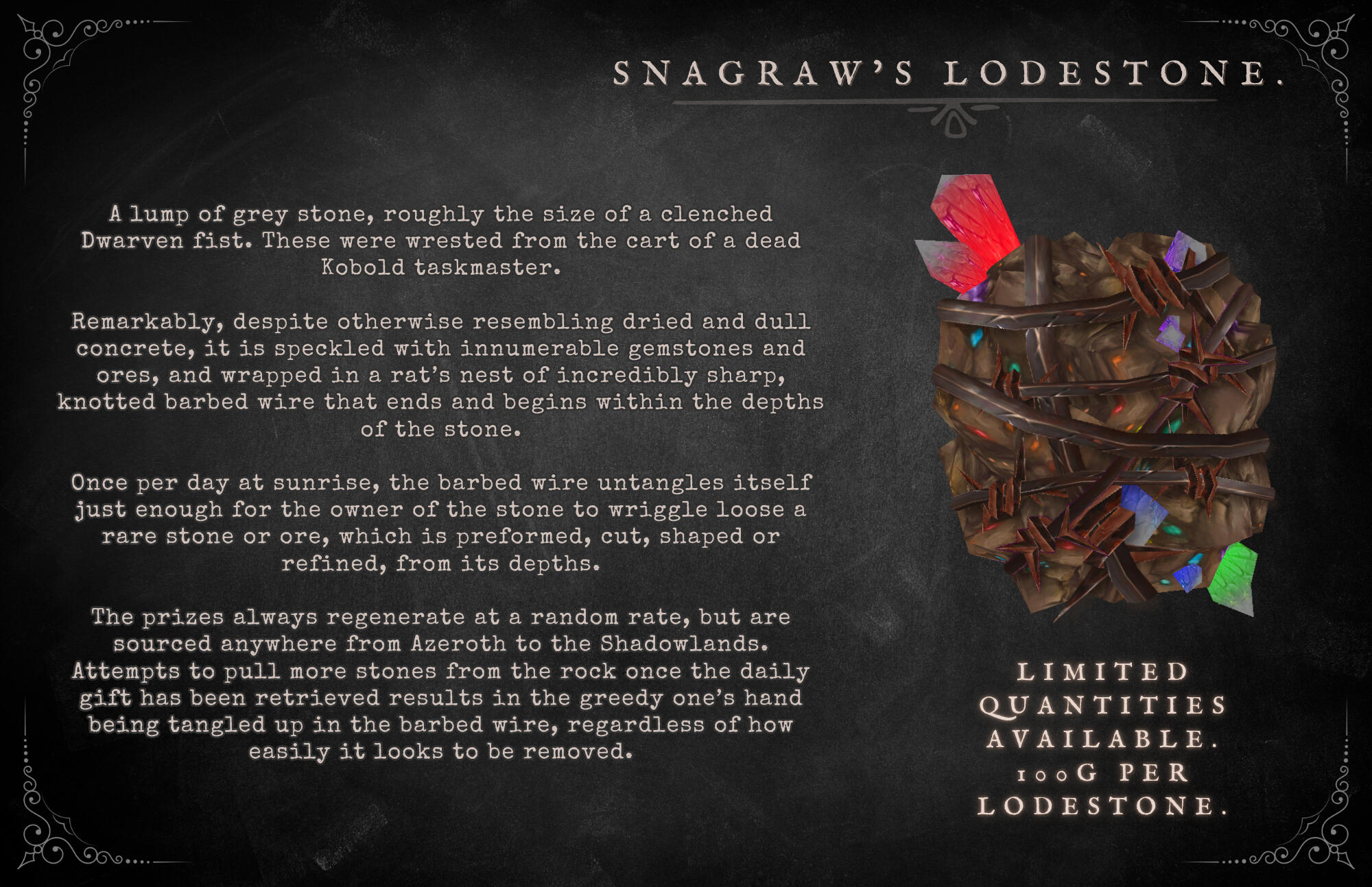 The Broker is usually unbothered when a customer attempts to purchase from him with something as simple as a handful of Gnomish bolts and a wad of chewing gum in lieu of the listed value, and often offers the same courtesy to baffled Azerothian vendors.