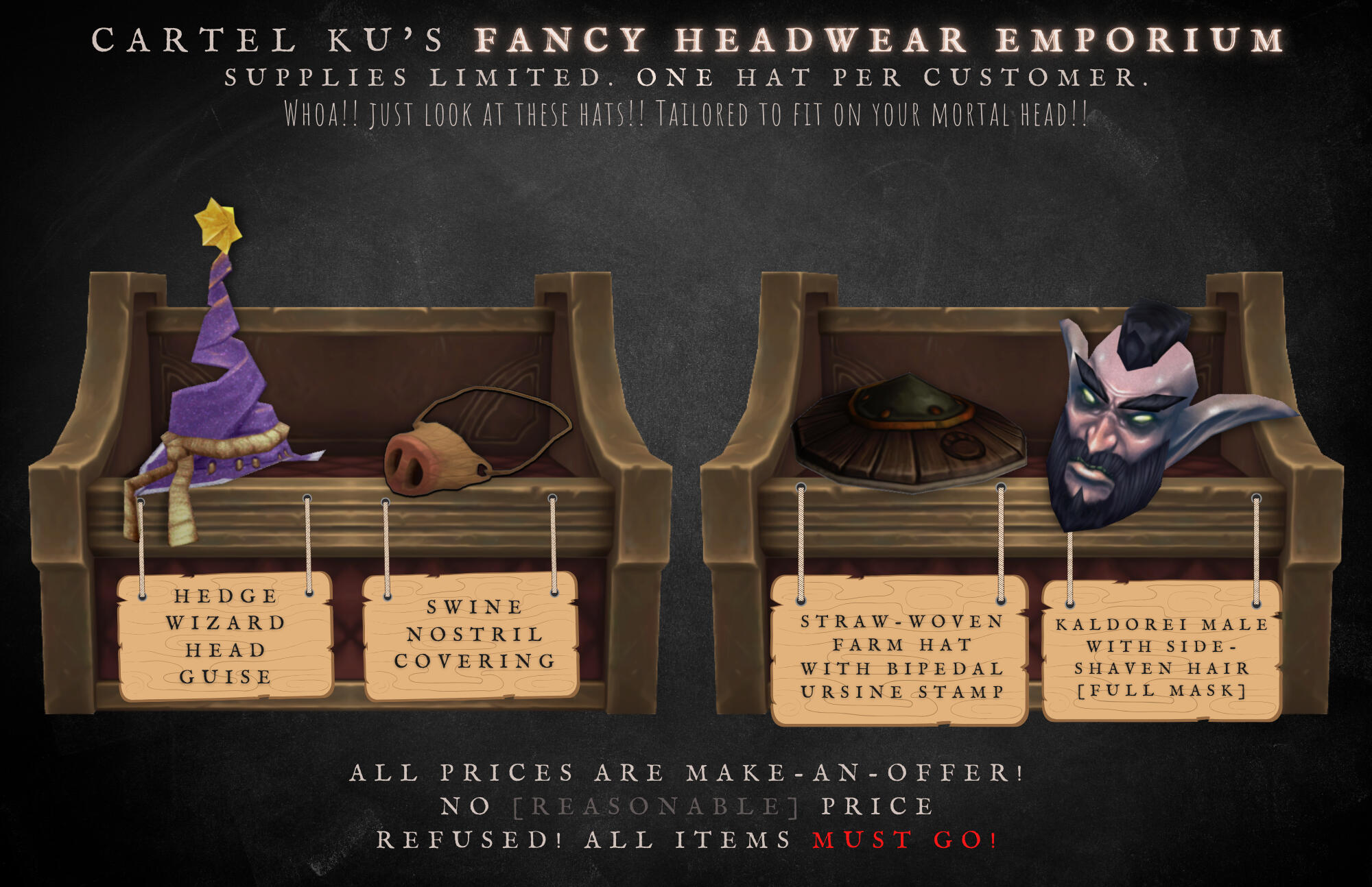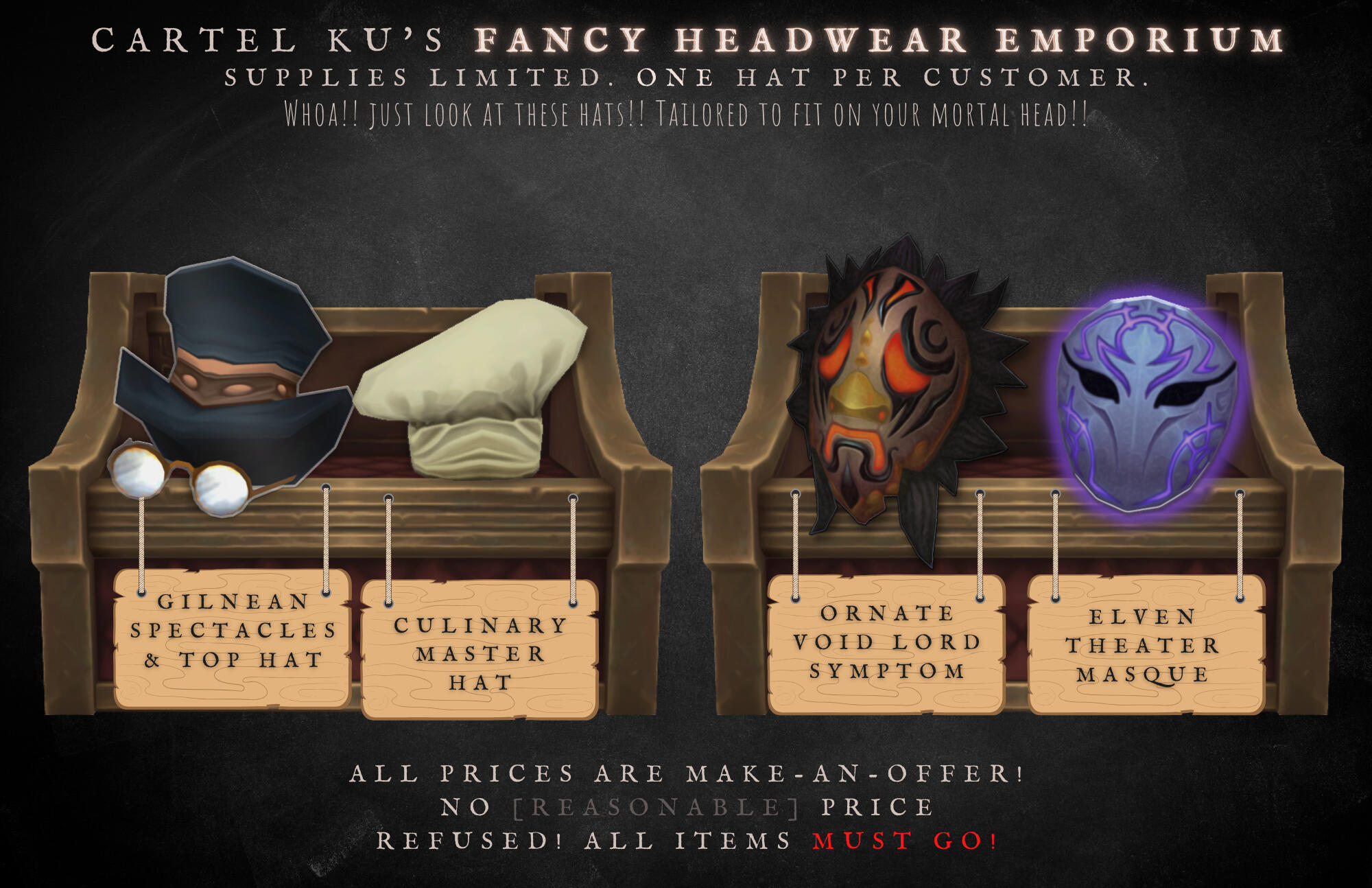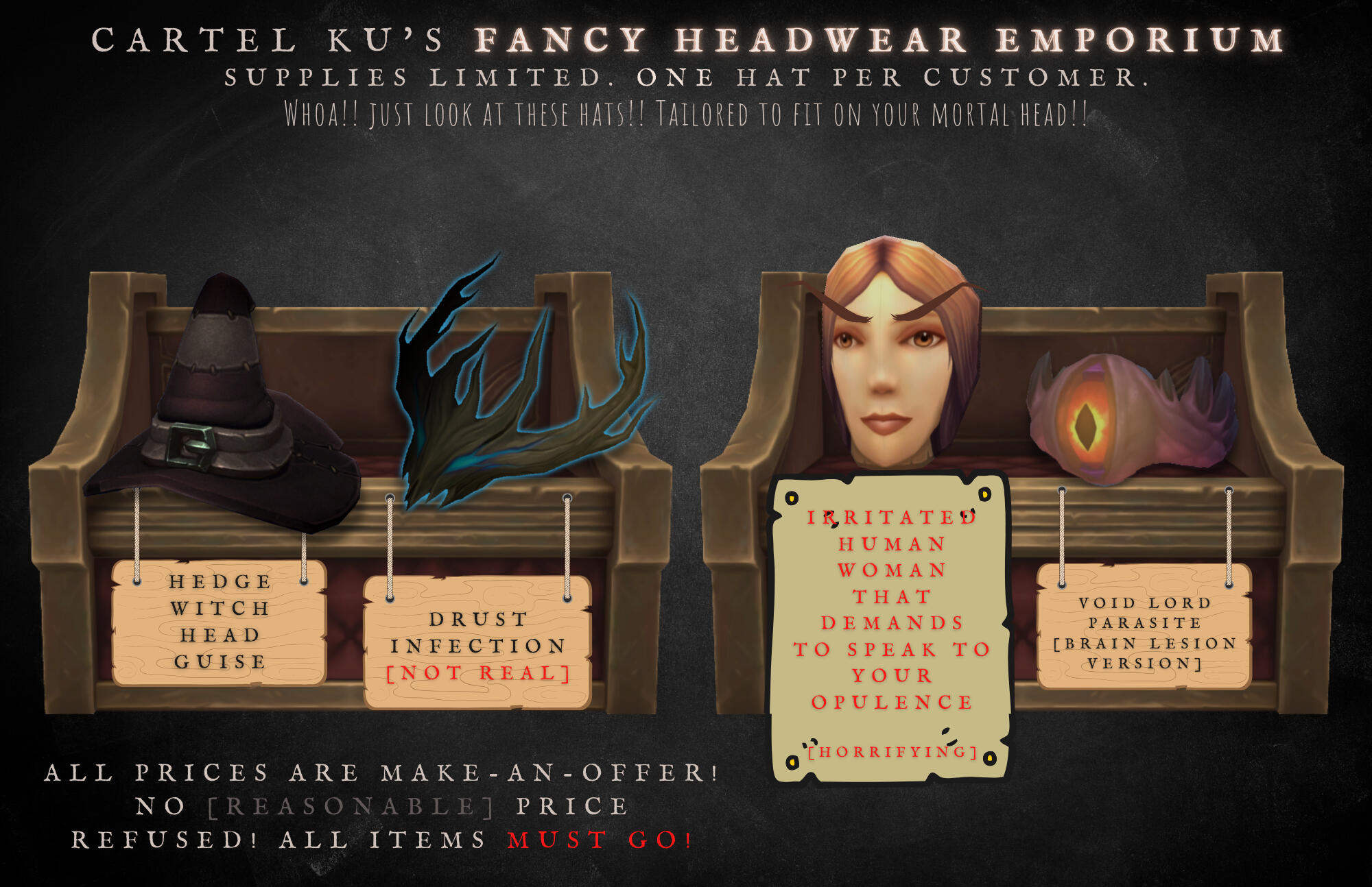 There are strategic occasions the Broker dons reality-warping, perception-changing trinkets to give those that don't look too much into them the impression they are a harmless mortal; only then is the dinner plate covering their firey face removed to show itself to be that of a normal Whatever'dorei of no real affiliation.