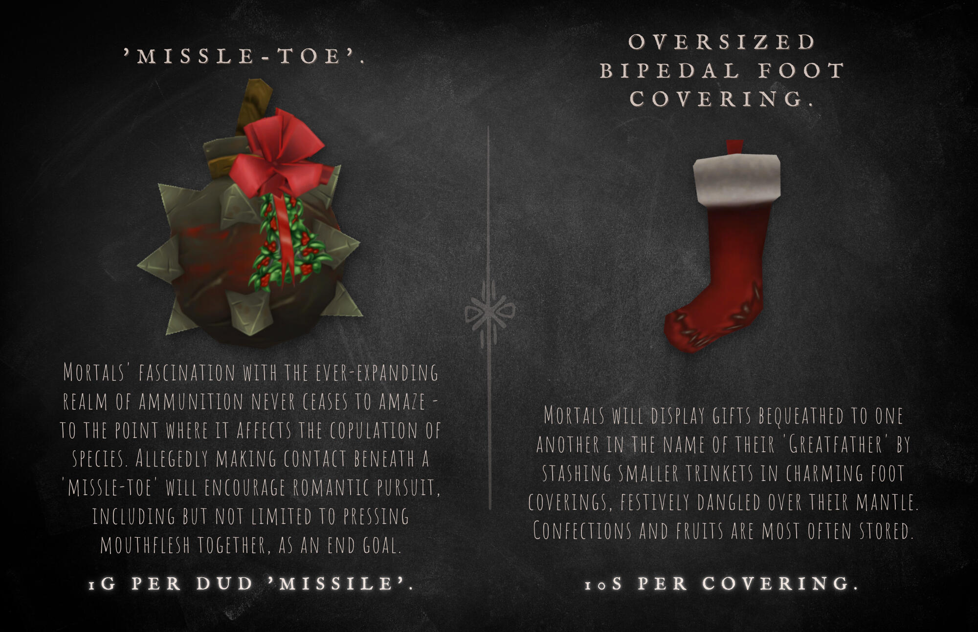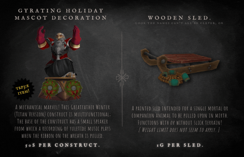 On occasion, Ku'rowl will celebrate Azerothian holidays - maintaining the spirit of the time, even if it's something as innocently championed as Hallow's End in January, or Midsummer during Noblegarden. The boy loves his holidays, and will dress accordingly - his favorite garb being that of a Winter's Veil sweater that is kept pristine.